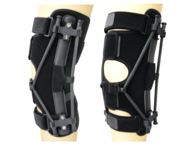 - ゴムの張力で膝の動きをサポートする膝装具